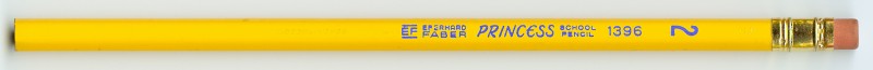 Princess School Pencil 1396 #2 (four variations shown), and a 1396 F,  all hex with metal ferrule and eraser